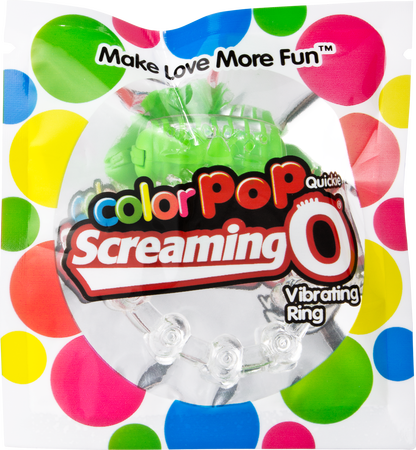 The Screaming O ColorPoP Vibrating Ring is the neon-hued version original award-winning vibrating sex toy for couples that enhances the ability for women to reach orgasm during intercourse! Approximately 75% of women need clitoral stimulation to have an orgasm and The Screaming O ColorPoP Vibrating Ring is specially designed to transfer vibration to the clitoris each time her partner’s body makes contact with hers. The result is simultaneous stimulation that helps enhance the sexual experience for both partners! Simply stretch the ring around the penis and testicles with the motor on top; the ring won’t constrict or feel tight, it’s there just to keep the vibrating motor in place. And when you’re done, simply toss it away – this popular sex toy for couples is completely disposable!
